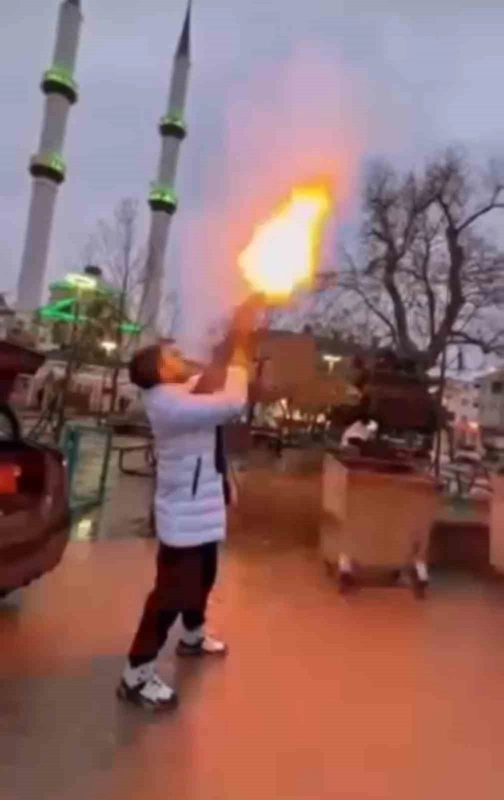 Olay, Nilüfer ilçesi Ürünlü Mahallesi’nde meydana geldi. İddiaya göre İbrahim G. isimli şahıs, eline aldığı pompalı tüfekle mahalle arasında art arda havaya ateş etti. Silah sesleri üzerine çevrede büyük korku yaşanırken, şüphelinin yanındaki arkadaşına o anları cep telefonuyla kaydettirdiği öğrenildi. Görüntülerin sosyal medya platformlarında yayılması üzerine Bursa İl Emniyet Müdürlüğü Asayiş Şube Müdürlüğü ekipleri harekete geçti. Kimliği kısa sürede tespit edilen şüpheli, düzenlenen operasyonla yakalandı. Emniyetteki işlemlerinin ardından adliyeye sevk edilen şüpheli, çıkarıldığı mahkemece tutuklanarak cezaevine gönderildi.