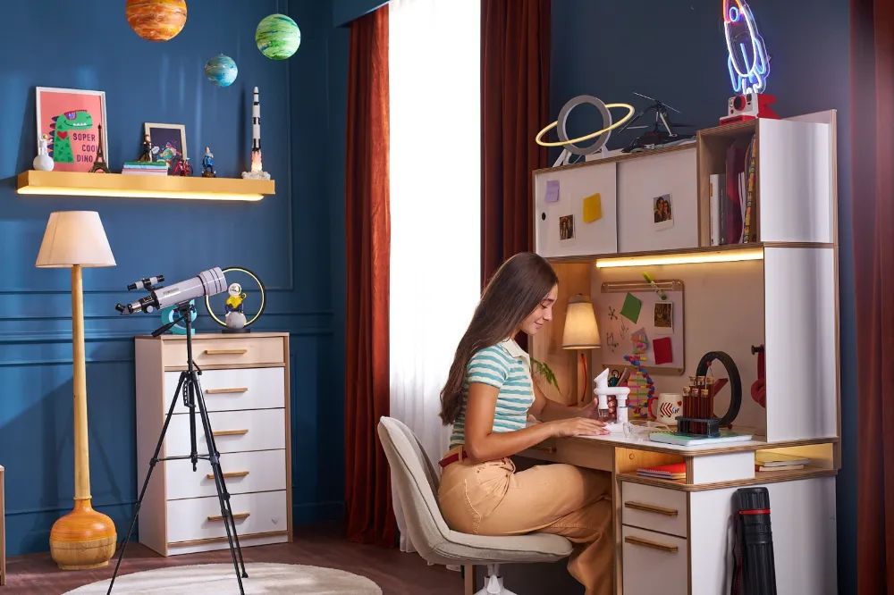 Ders çalışmak yalnızca masa başına oturmak değildir. Işığın açısı, rafların konumu, masa düzeni ve kullanılan malzeme kalitesi; bir çocuğun dikkatini, konforunu ve öğrenme isteğini doğrudan etkiler. Uzmanlara göre çocukların öğrenme verimliliğini artıran en önemli etkenlerden biri, ders çalıştıkları ortamın doğru kurgulanmasıdır. Masanın konumu, ışığın açısı, rafların yerleşimi ve kullanılan malzemeler, dikkat süresini ve motivasyonu doğrudan etkiler. Doğru bir çalışma düzeni, sadece akademik başarıyı değil, öğrenmeye olan ilgiyi de güçlendirir. Uzmanlar, masa konumunun pencereyle olan ilişkisini önemli buluyor. Doğal ışığın soldan gelmesi (sağ elini kullanan çocuklar için) göz yorgunluğunu azaltırken pencereye çok yakın konumlandırma dış etkenlerin dikkati dağıtmasına yol açabiliyor. Raf ve ünitelerin masanın hemen arkasında değil yan tarafında bulunması, öğrencinin dikkat alanını sade tutarak verimi artırıyor. Bu farkındalıkla geliştirilen Çilek çalışma masaları, entegre TYP-C girişli LED aydınlatma sistemleriyle donatıldı. Işığın rengi ve parlaklığı özel olarak ayarlanmış yumuşak beyaz tonda, gözü yormadan uzun süreli çalışma konforu sunuyor. TYP-C bağlantı noktası ise aydınlatmayı güvenli hale getirirken ek priz ihtiyacını ortadan kaldırıyor. Bu yenilik, özellikle teknolojiyle iç içe büyüyen yeni nesil öğrenciler için hem pratik hem güvenli bir çözüm sunuyor. Çilek, tasarımlarında yalnızca estetiğe değil malzeme güvenliğine de öncelik veriyor. Kullanılan ahşap paneller E1 standardına uygun düşük formaldehit içeriyor; REACH ve RoHS direktiflerine tam uyum sağlanıyor. Tüm boyalar ve vernikler, EN 71-3 toksik madde analizlerinden geçerek sağlığa zararsız hale getiriliyor. Bu sayede çocuklar, uzun saatler geçirdikleri çalışma alanlarında hem konforlu hem de güvenli bir deneyim yaşıyor. Ders başarısı, yalnızca ne kadar çalışıldığıyla değil, nerede çalışıldığıyla da ilgilidir. Işığı, düzeni, malzemesi ve güvenliğiyle özenle tasarlanan her Çilek çalışma masası, çocuklara yalnızca bir mobilya değil, öğrenmeye ilham veren bir alan sunuyor. Çilek, çocukların hayal gücüyle öğrenme tutkusunu buluşturan tasarımlarıyla, geleceğe güvenle hazırlanabilecekleri ortamlar yaratmaya devam ediyor. Çilek Hakkında Çilek, 1996 yılında aile şirketi olarak Türkiye'de kurulduğu günden beri, çocukların düşlerini odalarına kurmak için çalışıyor. Bugün bu topraklardan çıkan güçlü bir Türkiye markası olarak, 5 kıtada, 50’den fazla ülkede 500’den fazla satış noktasıyla 5 milyondan fazla çocuğun hayallerine dokunmanın haklı gururunu yaşıyor.