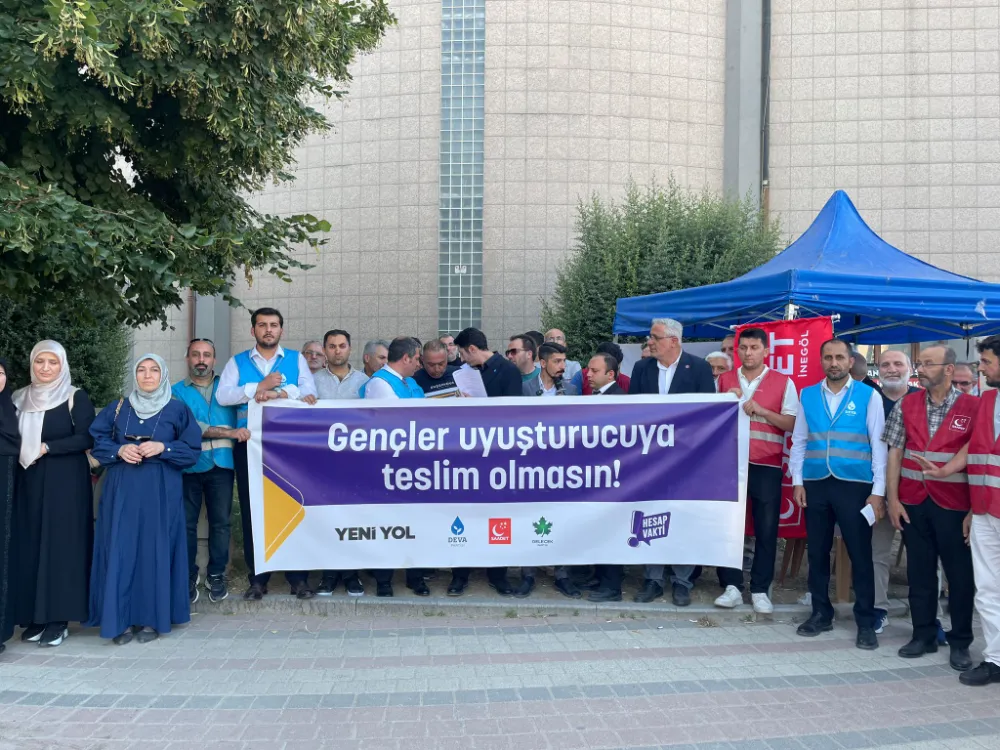 Bu kapsamda bugün İnegöl Sani Konukoğlu camii önünde stant açılarak ortak basın açıklaması yapıldı. "Uyuşturucuya Sessiz Kalanlara Karşı Vatandaşın Hesabı Var" sloganıyla başlatılan kampanya kapsamında İnegöl'de de imza toplandı. Yeni Yol Grubu’nu oluşturan partilerin İnegöl İlçe Teşkilat Başkanları, uyuşturucu kullanımına dikkat çekerek devletin politikalarının yetersiz olduğunu ifade etti.