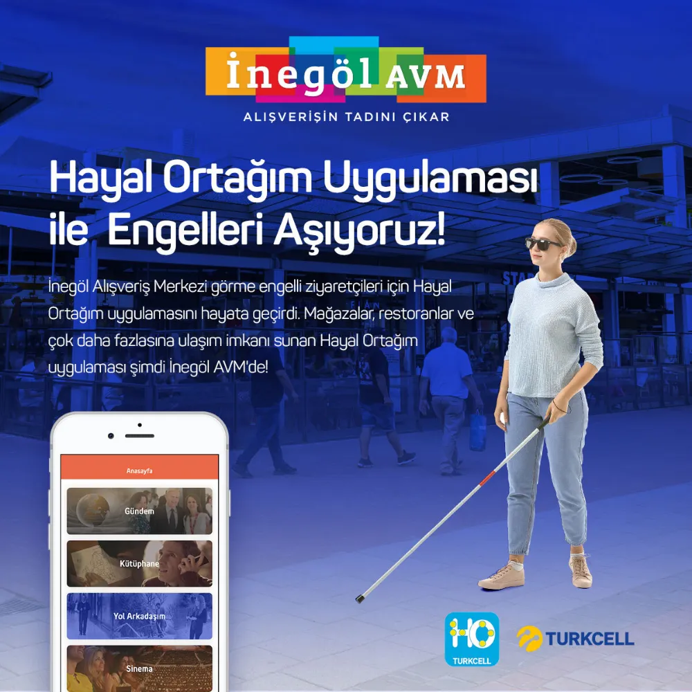 Fiba CP’nin yatırımcısı ve yöneticisi olduğu İnegöl AVM; engelli bireylerin AVM içerisinde kolaylıkla alışveriş yapması ve tüm ziyaretçilerin eşit fırsatlara sahip olmasını desteklemek için çalışmalarına hız kesmeden devam ediyor. İnegöl AVM, Turkcell ile iş birliği yaparak ‘Hayal Ortağım’ uygulamasındaki ‘Yol Arkadaşım’ özelliğini ziyaretçilerinin kullanımına sundu. İnegöl AVM böylece, görme engelli bireylerin cep telefonları aracılığıyla alışveriş merkezlerinde rahatça gezinmesine destek oluyor.