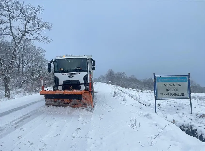 İnegöl’de beklenen kar yağışı dün öğlen saatleri itibariyle başladı. Meteorolojinin uyarıları üzerine hazırlıklarını yapan İnegöl Belediyesi, Fen İşleri Müdürlüğü uhdesindeki karla mücadele ekipleriyle sahaya indi. Dün 13.00 itibariyle özellikle yüksek kesimlerde ve kırsal mahallelere ulaşım noktasında kar küreme ve tuzlama çalışmaları başladı.