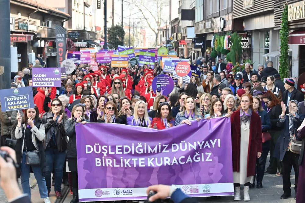 Bursa Büyükşehir Belediyesi ve Bursa Kent Konseyi iş birliğinde 8 Mart Dünya Kadınlar Günü dolayısıyla birbirinden renkli etkinlikler düzenlendi. Programlar, Park ve Bahçeler Dairesi Başkanlığı Kent Estetiği Şube Müdürlüğü tarafından Orhangazi Parkı’nda hazırlanan Playwood etkinliği ile başladı. Etkinliğe katılan kadınlar, dileklerini, isteklerini ve vermek istedikleri mesajları not kağıdına yazıp panoya yapıştırdı. Bursalı kadınlar daha sonra Barış Kadın Bandosu eşliğinde ‘Düşlediğimiz dünyayı birlikte kuracağız’ diyerek Cumhuriyet Caddesi’nden Hanlar Bölgesi’ne kadar yürüdü. Bursa Büyükşehir Belediyesi’nin destekleriyle düzenlenen yürüyüşe, Seden Bozbey, Nadire Aydın, Nuray Özdemir, CHP Bursa Milletvekili Nurhayat Altaca Kayışoğlu, Bursa Kent Konseyi Genel Sekreteri Elvan Atay Özkan, Bursa Büyükşehir Belediyesi’nin kadın bürokratları, çeşitli sivil toplum kuruluşları temsilcileri ve kadınlar katıldı. Yürüyüşün ardından Hanlar Bölgesi’nde bir açıklama yapan Bursa Kent Konseyi Kadın Meclisi Başkanı Derya Şimşek Aksakal, kadınların birbirine gönülden bağlı olduğunu vurguladı. Düşledikleri dünyayı birlikte kuracaklarını söyleyen Aksakal, “Ne olursa olsun el ele ve omuz omuza vererek eşit ve adil bir yaşamda mutlaka buluşacağız. Güvenle yaşadığımız evlerimiz, sokaklarımız ve kentlerimiz olacak. Düşlerimiz gerçeğe dönene kadar vazgeçmeyeceğiz, pes etmeyeceğiz” dedi. Konuşmaların ardından Büyükşehir Belediyesi Kadın Master Ritim Grubu eşliğinde çeşitli atölyeler düzenlendi. Bursalı kadınlar, ‘Seslerimiz Yankılanıyor’ isimli açık mikrofon etkinliği, mesaj duvarı, kuyu etkinliği ve ateş çemberi etkinlikleri ile daha eşit, adil ve özgür bir dünya taleplerini yüksek sesle dile getirdi