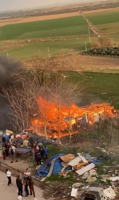 Bursa’nın Karacabey ilçesinde alev alev yanan ağılda şans eseri hayvanlar zarar görmedi.