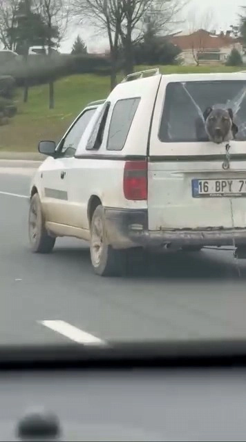 İlginç anlar, Bursa-Ankara karayolu üzeri İnegöl girişinde kayda alındı. Sürücüsünün ismi öğrenilemeyen kamyonetin arka camının kırık olduğu görüldü. Camdan başını dışarı çıkaran köpek, trafikteki diğer sürücülerin dikkatini çekti. Köpeğin rahat tavırları ve etrafı meraklı gözlerle izlemesi görenleri gülümsetti.