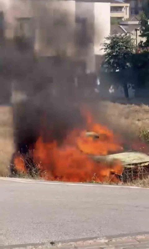 Terk edilmiş otomobil alev alev yandı