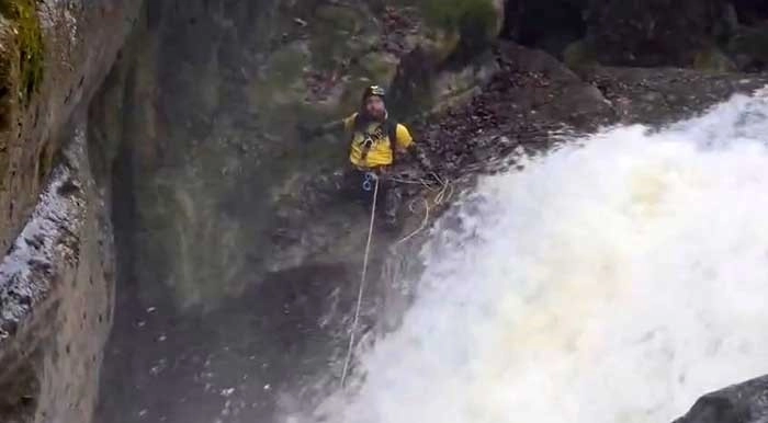Yağmur ve kar sularıyla coşan kanyondan kurtuldu