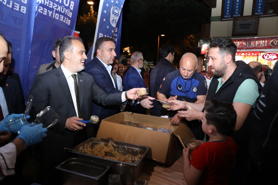 Bursa Büyükşehir Belediyesi tarafından ilçelerde düzenlenen geleneksel iftar programları, kent merkezinde de Cumhuriyet Caddesi boyunca kurulan sofralarla devam etti. Yaklaşık 10 bin vatandaş ile esnafın iştirak ettiği programa; Bursa Valisi Yakup Canbolat, Büyükşehir Belediye Başkanı Alinur Aktaş, AK Parti İl Başkanı Davut Gürkan, Cumhuriyet Caddesi Sanayici ve İş Adamları Derneği Başkanı Ali Sait Adiloğlu, muhtarlar, belediye meclis üyeleri, kamu kurumları ve sivil toplum kuruluşlarının temsilcileri de katıldı. İftar öncesi, Meddah ve Karagöz gölge oyunu gösterisi, çocuklara keyifli anlar yaşatırken; Muradiye Camii İmam Hatibi Muhammet Lütfi Taşçı, Kur’an-ı Kerim okudu. Akşam ezanının girmesiyle vatandaşlar, hep birlikte oruçlarını açtı.