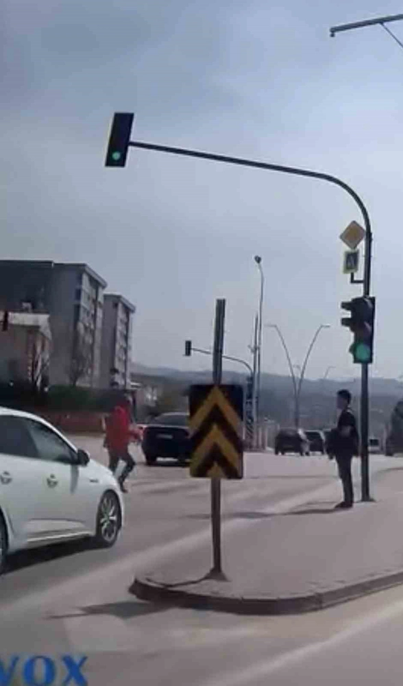 Bir adım hayat kurtardı… Kırmızı ışıkta yola atladı, facia teğet geçti