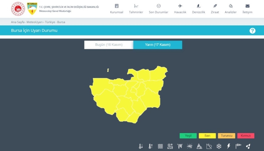 Meteoroloji Genel Müdürlüğünden yapılan açıklamada, yarın 09.00'dan gece 21.00'a kadar sürmesi beklenen uyarıda şu ifadelere yer verildi: