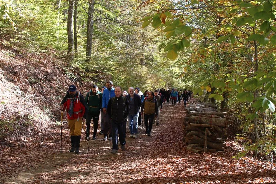 Pazar günleri yapılan ücretsiz doğa yürüyüşü etkinliklerinin bu haftaki güzergahı şehrin doğu bölgesi oldu. Domaniç Orman Deposu bölgesinden başlayan doğa yürüyüşü, Sütlük Yaylasını takip ederek Oylat bölgesinde son buldu. 22 kilometrelik orta zorluktaki parkurda yürüyüşe katılan vatandaşlar, Pazar sabah 08.30’da Hikmet Şahin Kültür Parkı içerisinde bulunan Belediye Spor Salonu önünden araçlarla başlangıç noktasına getirildi. Burada araçlardan inerek İnegöl’ün eşsiz sonbahar manzarasına sahip doğasıyla kucaklaşan doğaseverler, renk cümbüşüne sahne olan ormanlarda unutulmaz bir hafta sonu yaşadı.