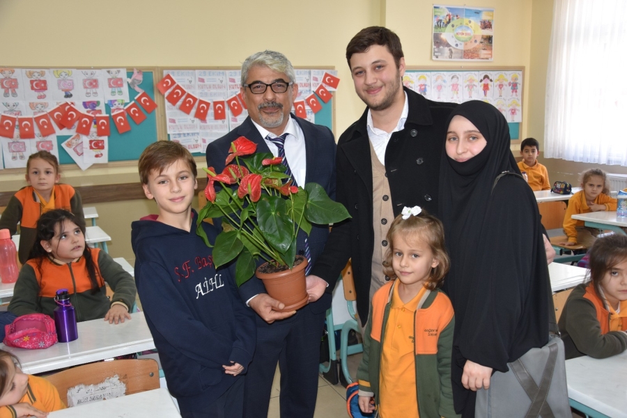 Hüseyin Gürz ise, “24 Kasım Öğretmenler Gününde öğretmenimize bir sürpriz yapmak istedik. Öncelikle Okul Müdürümüzle iletişime geçip, kendisinin desteğiyle öğretmenimize sürpriz yaptık. Aslında bu hikaye benimle başlıyor. İlk öğretmen olarak benle başladı. Akabinde diğer üç kardeşimi de okuttu. Bize milli manevi değerleri aktardı. Ve akabinde mezuniyet sonrasında bizi bırakmayarak, her türlü anlamda teşvik ederek, destekleyerek, fikirlerimize ön ayak olarak bize öğretmenliğin aslında sadece bir harf öğretmek bir kelime aktarmak olmadığını, bizim ailemizden biri olarak gösterdi diyebiliriz. Peygamberi bir meslek yapıyorlar öğretmenler. Hz. Ali’nin de dediği gibi ‘Bana bir harf öğretenin 40 yıl kölesi olurum.’ Bizim ailemizden 4 kişiyi Erdoğan öğretmenimiz okuttu. Artık bizim ailemizden bir birey diyebiliriz. Buradan da tüm öğretmenlerin öğretmenler gününü kutluyorum” dedi.