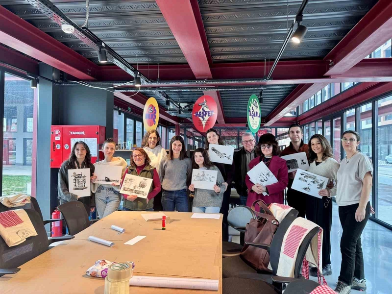 Nilüfer Belediyesi’nin düzenlediği "Depoda Sanat Var" programı, sanatseverleri deneysel üretim süreçleri ile buluşturdu. Program kapsamında sanatçı Burcu Güven yürütücülüğünde gerçekleşen "Şeffaf Katmanlar Atölyesi"nde katılımcılar, şeffaf bant ve mürekkep kullanarak üretim yaptı.