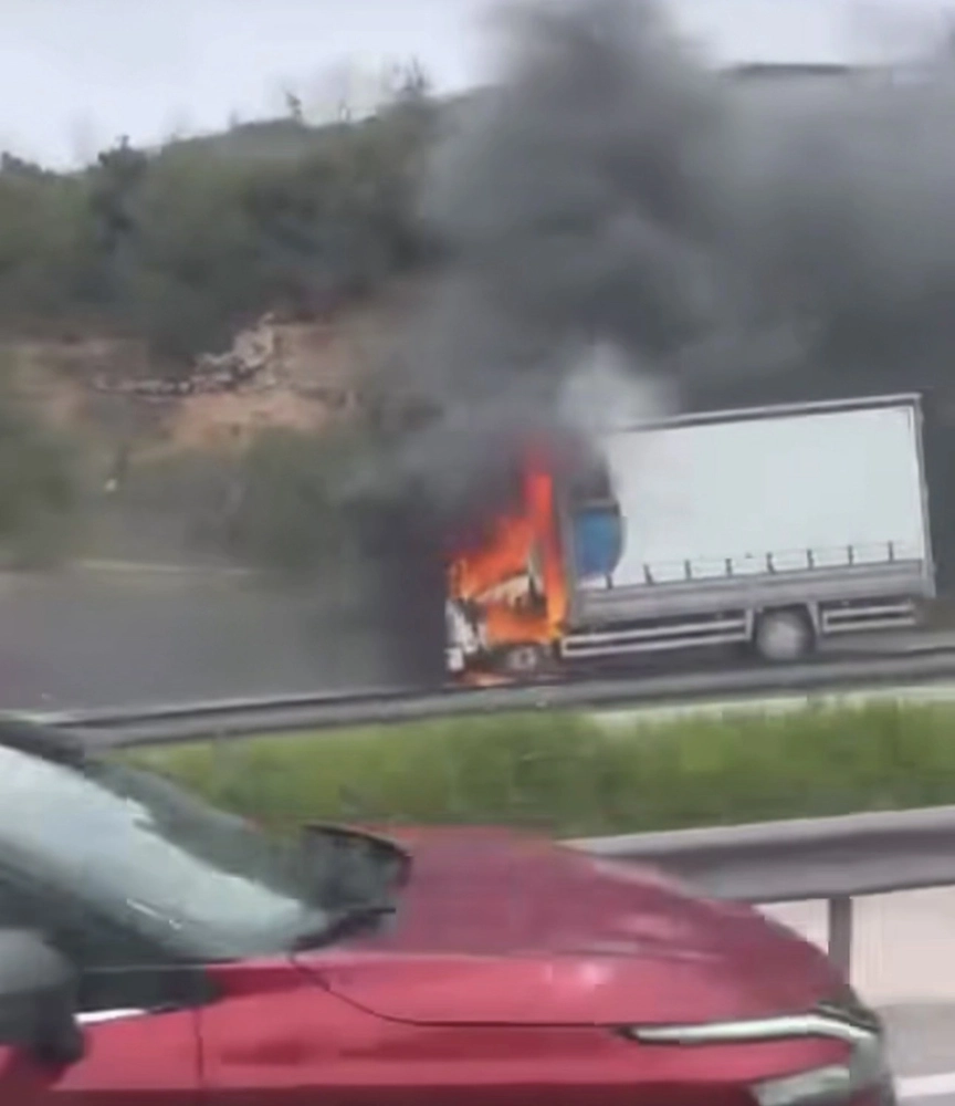 Edinilen bilgiye göre, seyir halindeki bir kamyon henüz belirlenemeyen bir nedenle alev aldı. Kısa sürede büyüyen yangın kamyonu tamamen sararken, sürücü aracı yol kenarına çekerek kendini dışarı attı. İhbar üzerine olay yerine itfaiye ekipleri sevk edildi. Ekiplerin hızlı müdahalesiyle yangın kontrol altına alınarak söndürüldü.